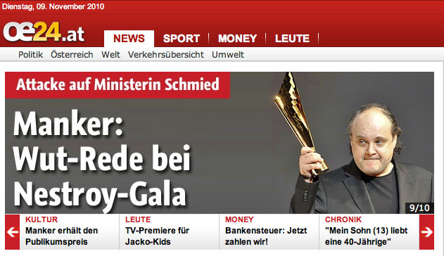 Gepfefferte Rede. Manker als Star der NESTROY-Gala